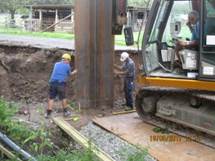 auf Stahlspundbohlen (Schneidenlagerung).