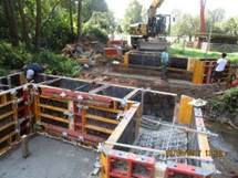 Stahlbetonplatte aus zwei Fertigteilen hergestellt, anschließend erfolgt der