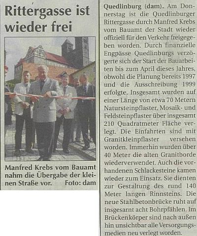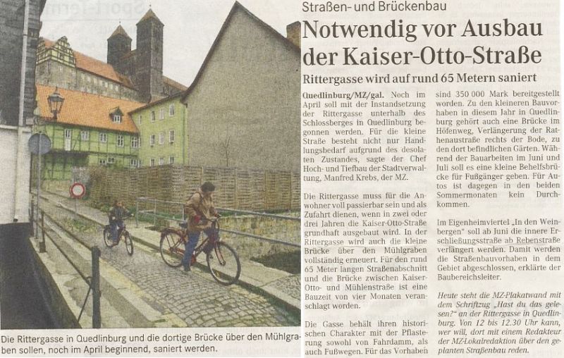 der „Rittergasse“ erneuert. Außerdem wurde im Zuge der Straßenbauarbeiten